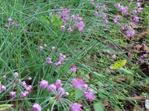 さて、きょうは近所の畑で見つけた「ラッキョウの花」を