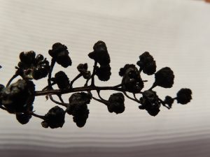 種は3ミリ程で扁平なほぼ円形、黒色です。↓
