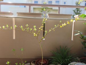 ベランダでは数日前からシナレンギョウが咲き始めました。